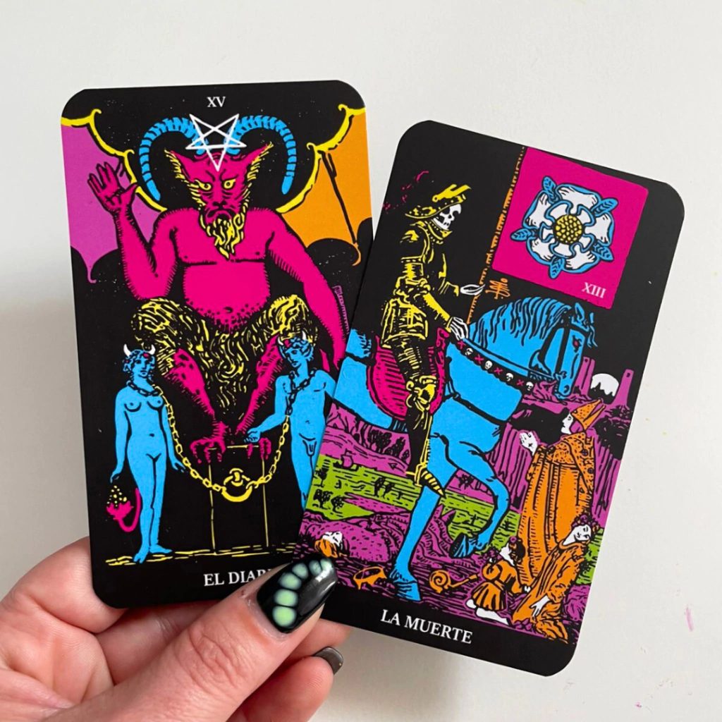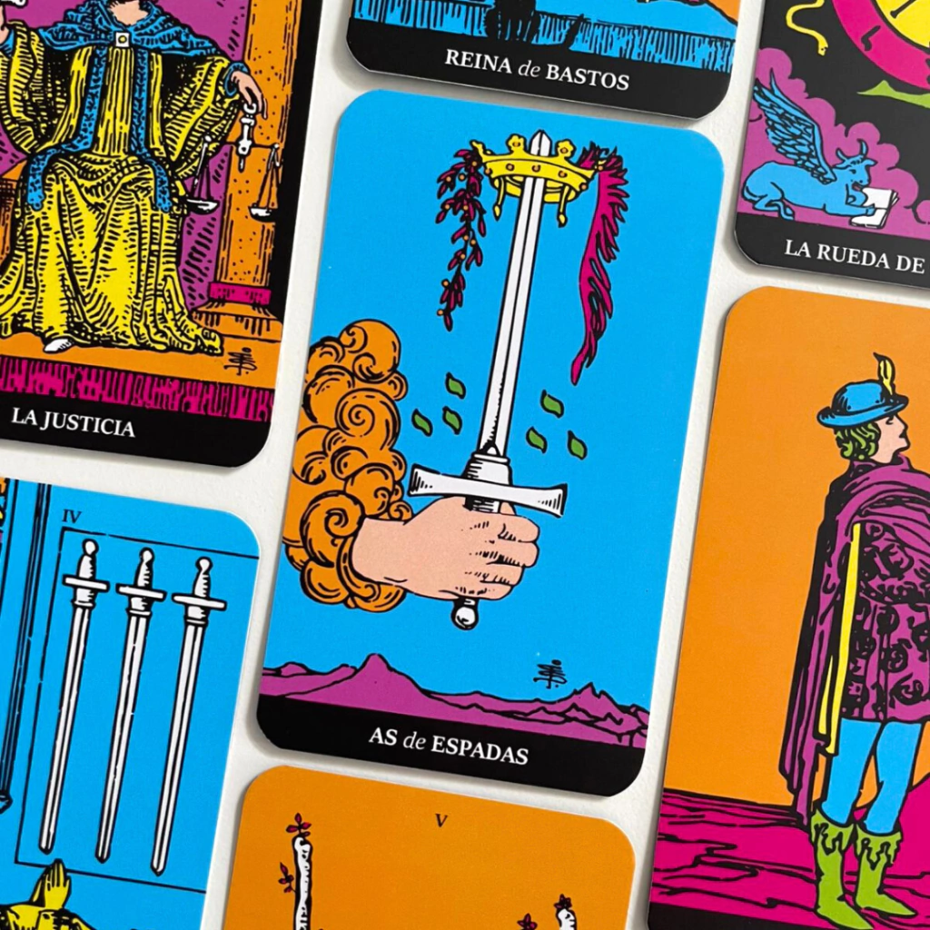 El clásico Tarot Rider Waite Smith recoloreado en tonos vibrantes, con contraste único para elevar tus lecturas.