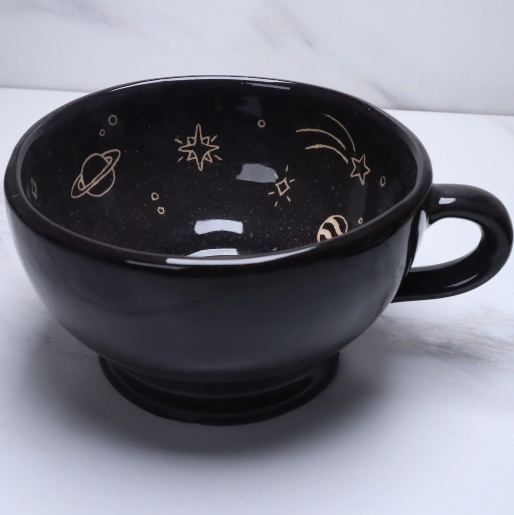 Nuestra línea de cerámicas está pensada y diseñada con el propósito de ser un objeto valioso para tu hogar, tu lugar de trabajo y tus rituales. En este caso te presentamos a nuestro tazón universo.